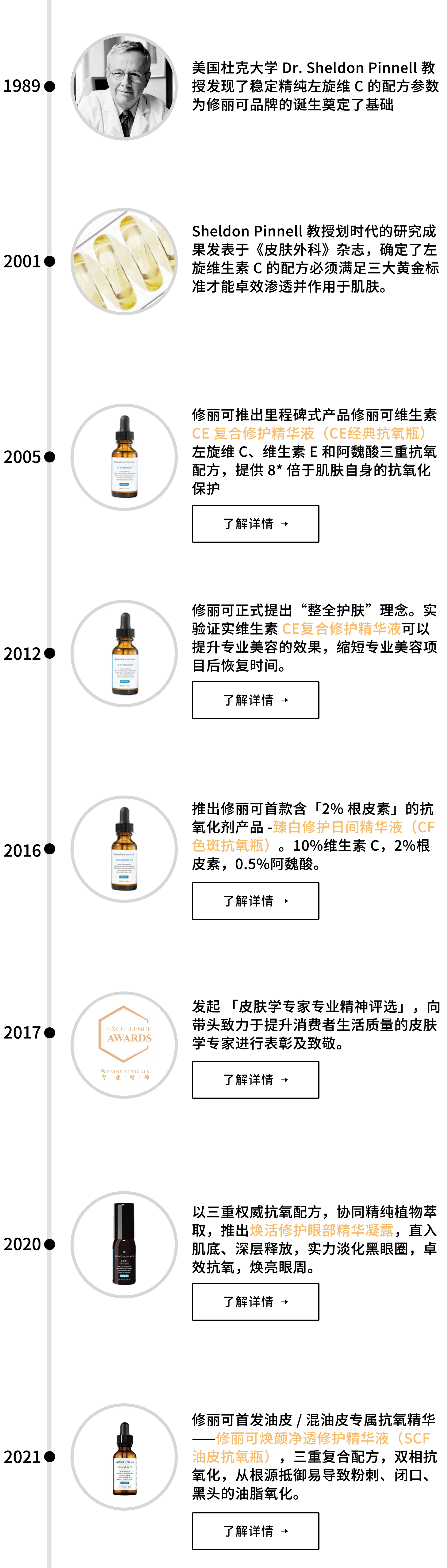在皮肤学方面的研究获得了专利*。其中,对修丽可历史极具影响力的莫过于「稳定的维他命C/L-抗坏血酸配方」*